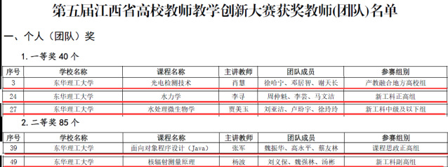 近日,由江西省教育厅指导、江西省高等教育学会主办的第五届江西省高校教师教学创新大赛结果揭晓,雷速网页版获评优秀组织奖,推选的5个教师(团队)共获一等奖3项、二等奖2项,其中一等奖获奖总数位列全省第二。水资源与环境工程学院李寻教师(团队)将代表江西省参加第五届全国高校教师教学创新大赛(新工科正高组)。