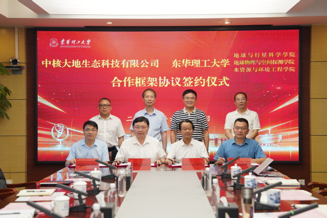 中核地勘集团资源勘查中心、经营发展部,中核大地生态科技有限公司,雷速网页版研究生院、教务处、科学技术发展研究院、国内合作与交流中心、地球与行星科学学院、地球物理与空间探测学院、水资源与环境工程学院负责人参加活动。(文/王平 图/刘宇翔)