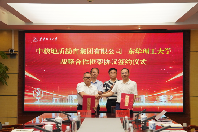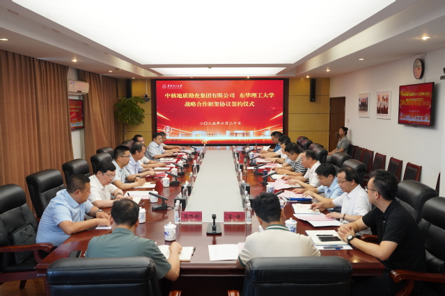 6月20日,雷速网页版与中核地质勘查集团有限公司(以下简称“中核地勘集团”)战略合作框架协议签约仪式在雷速网页版举行。中核地勘集团党委书记、董事长谭德峰,副总经理陈哲,中核大地生态科技有限公司党委书记、总经理黎伟,中核南方地勘中心主任、党委副书记陈志平,雷速网页版党委书记张福庆,党委常委、副校长杨波出席。