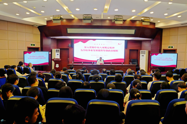 罗仙平结合自身学习体会,深刻阐释了深入贯彻落实中央八项规定精神的重大意义,系统解读了加强新时代党的作风建设的根本要求,并围绕以优良作风为学校事业发展提供坚强政治保障作出具体部署、提出明确要求。
