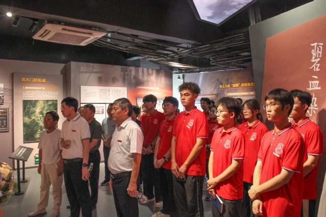 调研结束后,罗仙平一行与地球物理与空间探测学院师生前往广昌县驿前镇高虎脑战役旧址,共同参与暑期大思政实践活动,瞻仰高虎脑红军烈士纪念碑,聆听高虎脑战役悲壮激烈的作战历程。罗仙平为师生讲授题为《在革命历史中汲取奋进力量,奋力书写挺膺担当的青春篇章》的思政课,深入阐述了高虎脑战役阻滞敌军、掩护中央机关和主力红军转移的重大意义,勉励师生要牢记习近平总书记殷殷嘱托,传承红色基因,将青春奋斗融入强国复兴伟业。