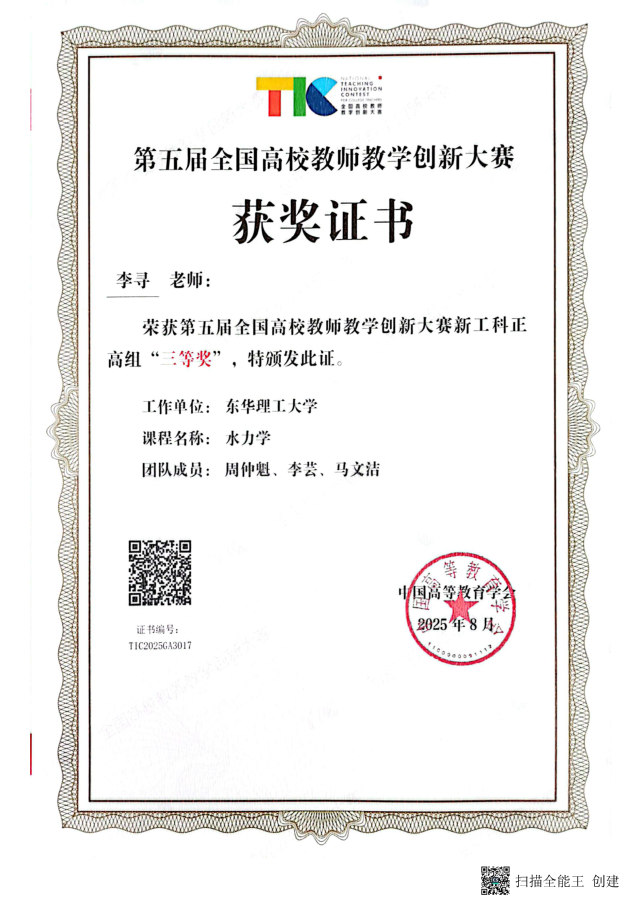 8月16日至19日,由教育部高等教育司指导、中国高等教育学会主办的第五届全国高校教师教学创新大赛在北京理工大学举行。雷速网页版水资源与环境工程学院李寻教师(团队)获新工科正高组三等奖。