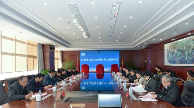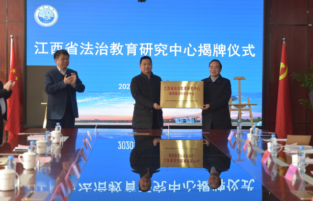 2020年12月31日上午,江西省法治教育研究中心揭牌授牌仪式在南昌大学前湖校区举行,我校作为江西法治教育普法研究分中心榜上有名。省司法厅一级巡视员邓奕强出席并讲话,省委教育工委委员、省教育厅副厅长裴鸿卫主持仪式并为研究中心共同揭牌,我校党委常委、副校长刘云海率队参加了揭牌授牌仪式。