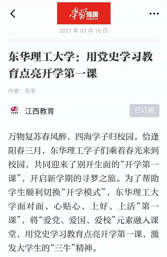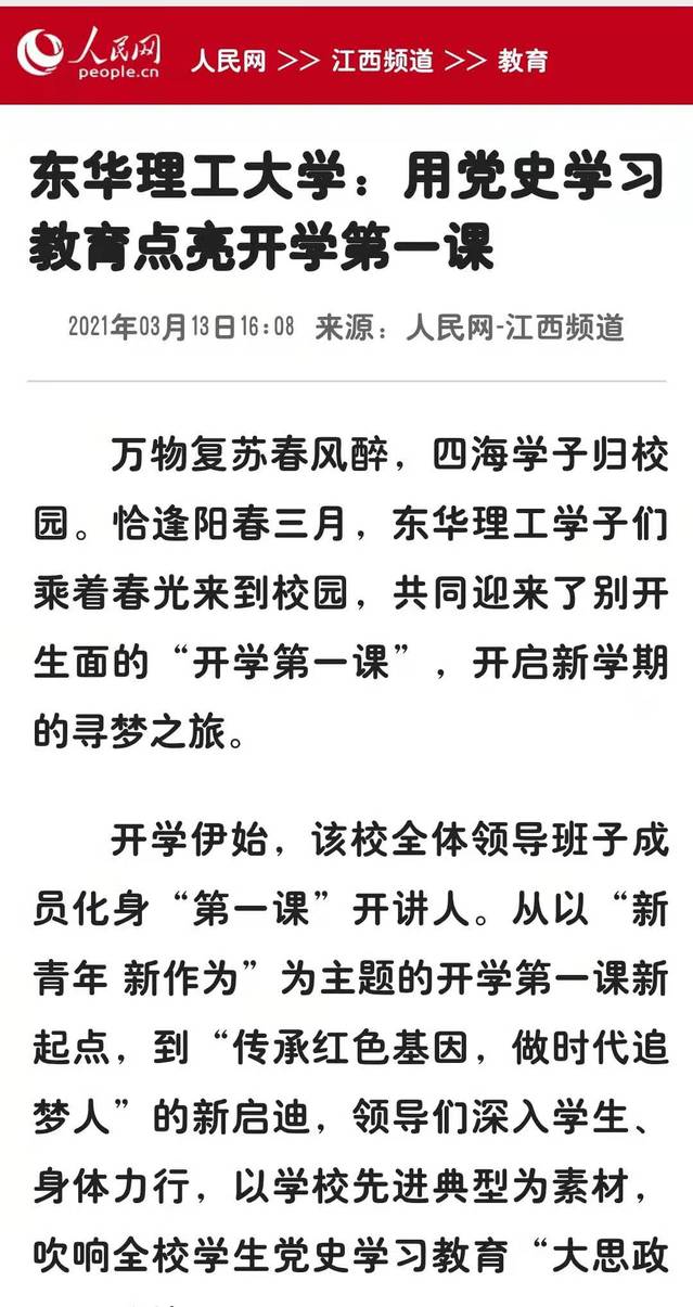 万物复苏春风醉,四海学子归校园。恰逢阳春三月,东华理工学子们乘着春光来到校园,共同迎来了别开生面的“开学第一课”,开启新学期的寻梦之旅。为了帮助学生顺利切换“开学模式”,雷速网页版面对面、心贴心上好、上活“第一课”,将“爱党、爱国、爱校”元素融入课堂,用党史学习教育点亮开学第一课,激发大学生的“三牛”精神。