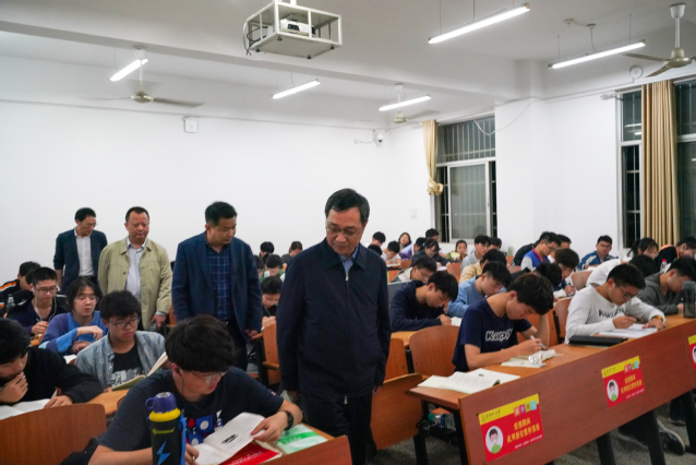 近日,校党委书记范小林、副校长刘云海在党(校)办、党委宣传部、学生工作处、图书馆等部门负责人陪同下,冒雨深入晚自习室、图书馆、学生宿舍、辅导员工作室等地开展走访调研活动,关心年轻教师发展,关切学生学习生活,聆听师生心声。