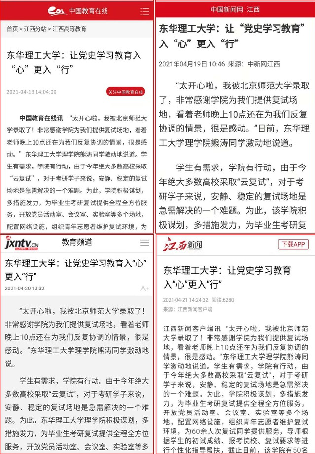 编者按:自党史学习教育开展以来,我校立足实际、创新形式、丰富内容,确保“规定动作”不走样,“自选动作”有特色,深入开展“我为师生办实事”实践活动,在解决师生的急忧愁盼事上下功夫,不断提升学院师生的获得感和幸福感,推动党史学习教育入脑入心、走深走实。近期,中新网、中国教育在线等媒体对此进行报道,现将内容转载如下: