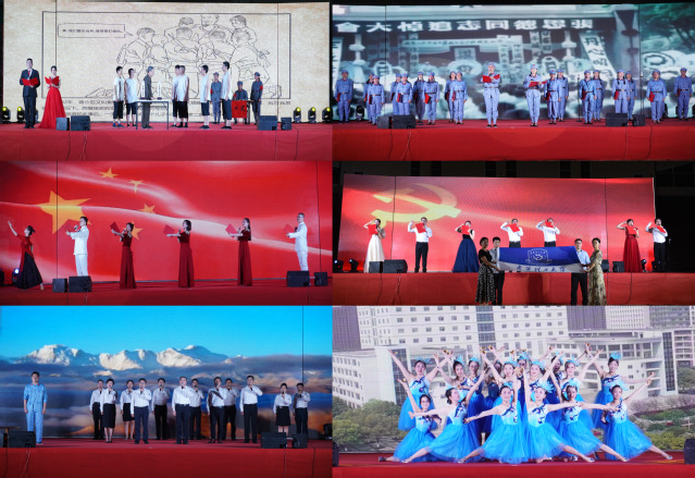 100年的峥嵘岁月,100年的浴血拼搏,100年的劈荆斩浪,100年的春华秋实。中国共产党百年历史证明,只有在中国共产党的领导下,人民才能走向幸福。本次教职工诵读活动历时3个月,经过各单位初赛选拔推荐,学校复赛评选,最终有16支代表队进入当晚的决赛展演。本次展演晚会以朗诵、情景剧、舞蹈以及红色歌曲演唱相结合的形式,演绎百年党史中的典型事例,让全体师生传承红色精神,牢记历史,把握新时代责任与担当。