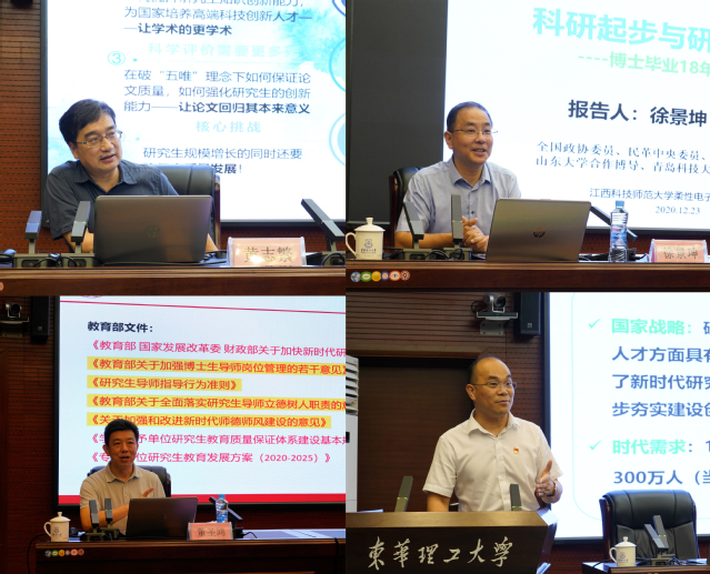 本次培训会共有四个专题报告,南昌大学黄志繁教授作了“研究生教育的新形势和导师的新要求”专题报告,分析了学位与研究生教育改革的新趋势,提出了学位与研究生教育改革的新要求和新理念,如要创新雷速(中国)模式,优化生源招生质量,完善导师奖惩机制等;江西师范大学董圣鸿教授作了“加强师德师风教育,落实立德树人根本任务”的专题报告,分析了国家和省里关于立德树人相关文件精神和要求,指出导师要具备四**宝,即学习师德理论、更新育人思想、培养道德情操、提高专业能力;江西财经大学罗世华教授作了“研究生创新的前提与基石---学术规范与科研诚信”的专题报告,从导师“如何领会学术规范和科研诚信文件精神”“如何避免学术不端问题”“如何打造科研伦理观念”“如何提升道德修养水平”等方面谈了自己的独到见解并提出了相应对策措施;江西科技师范大学徐景坤教授作了“科研起步与研究生培养”的专题报告,从“科研工作”“研究生培养”“行政管理”“团队发展”“个人心得”等多个视角出发,分享了他十八年来指导研究生的经验。