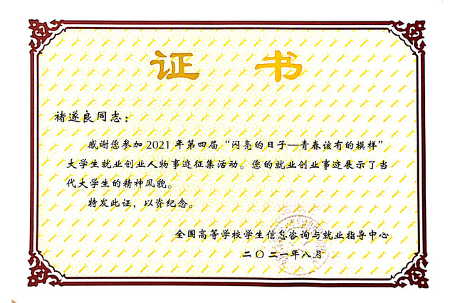褚遂良,男,2017级资源勘查工程专业学生。先后创办上海醒梦文化传媒有限公司和平顶山梦醒文化传媒有限公司。公司主播平均粉丝超30万,总粉丝数超5.5亿,已与超60家企业建立合作,推广产品424种,营业额超1亿元,直接带动就业人数超1000人。