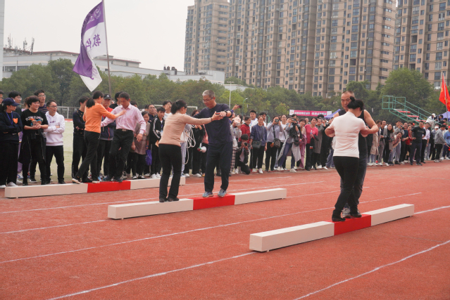 鹊桥相会项目中两名队员巧妙地互换位置,完美展现了两人手脚之间的灵巧互换;袋鼠跳、车轮滚滚尽显教师们的力量;抱球接力展示了老师们手眼协调、行动迅速;齐心协力六人七足赛场奔跑体现了老师们间的默契十足;混合跳绳项目长绳起落之间,尽显团结之风;个人项目更是奋力拼搏,勇争第一。教职工们参与比赛的情绪高涨,加油助威声此起彼伏,响彻赛场。