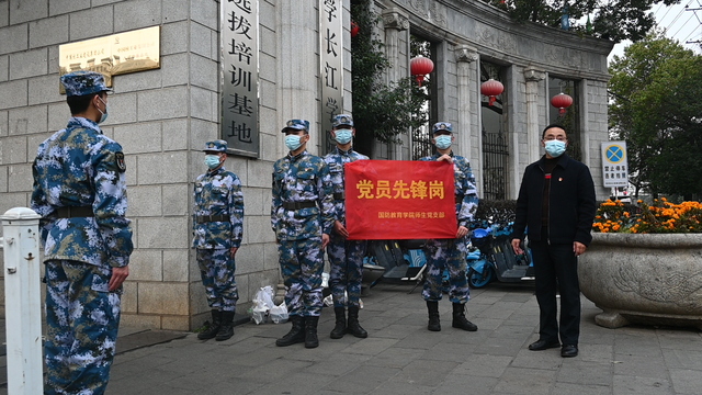“一直在这边看书自习,每天看到你们在这边巡逻值班,觉得‘海军蓝’是防疫中一道靓丽的风景线,也增加了我们心中的安全感!”士官生陈薪名这天值班恰逢大雨,一位路过的同学笑容满面地递来一把雨伞,温暖了陈薪名的心。