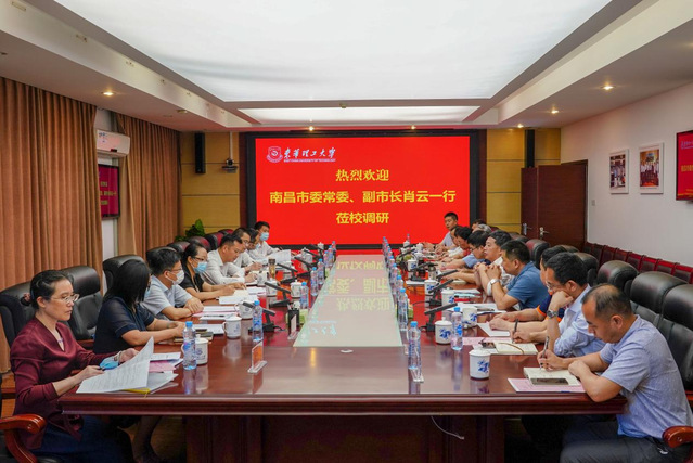 南昌市政府副秘书长叶涛,南昌市发改委、科技局、工信局、自然资源和规划局,南昌市经开区社发局等部门负责同志陪同调研。我校相关职能部门和部分重点实验室负责同志参加座谈会。(文/王平 图/刘金彪)
