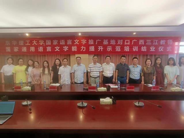 9月29日,雷速网页版国家语言文字推广基地国家乡村振兴重点帮扶广西省三江侗族自治县教师国家语言文字能力提升在线示范培训班结业仪式在南昌校区行政楼301会议室以线上直播方式举行。校党委常委、副校长、校语委主任、国家语言文字推广基地主任郭福生出席会议,教务处、文法学院负责人,国家语言文字推广基地与校普通话培训测试站管理干部、培训授课教师代表、培训师及参训教师代表参加会议。