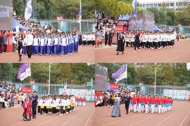 体育场上座无虚席。伴随着激昂的《运动员进行曲》,国旗护卫队迈着铿锵有力的步伐,护卫着鲜艳的五星红旗,走在队伍的最前列,尽显飒爽英姿。彩旗方队与裁判员方队紧随其后,意气风发,气宇轩昂,飘扬的彩旗,红的如火,蓝的如海,五颜六色,让整个运动场气氛热烈非凡。