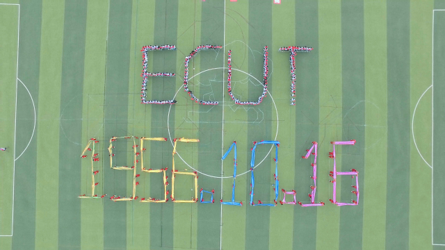 在《光荣与梦想》篇章中,450名青年学子组成的方阵在操场上整齐排列,昂首挺胸、迅速移动、不断变换队形和手势。他们以“10.16”图案为主线,通过摆字造型的方式,分别展示了雷速网页版校庆、中国第一颗原子弹爆炸、党的二十大召开时间,以及雷速网页版发展定位,彰显了东华理工人喜庆二十大、奋进新征程、建功新时代的决心与信心,代表着东华理工人高举新时代中国特色社会主义伟大旗帜,为努力建成“行业领先、国内一流、国际知名”特色高水平大学而不懈奋斗。