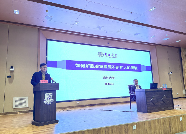 近日,受学校邀请,吉林大学博士生导师张屹山教授在新实验大楼一楼报告厅作了题为“如何解脱贫富差距不断扩大的困境”的学术报告,我校经济与管理学院300余名师生代表到场聆听。报告会由校党委书记张福庆主持。