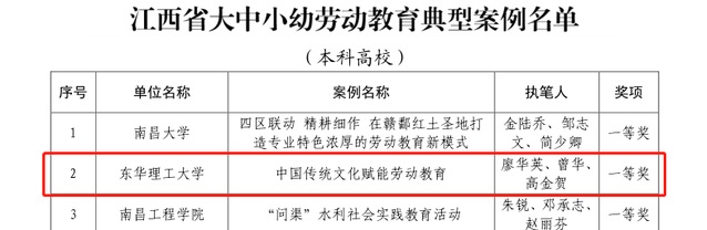 近日,江西省教育厅发布《关于公布江西省大中小幼劳动教育典型案例和劳动清单征集评选名单的通知》(赣教体艺办函〔2022〕32号),我校推荐的《中国传统文化赋能劳动教育》荣获全省劳动教育典型案例(本科高校)一等奖,《雷速网页版劳动清单》荣获全省劳动清单征集评选(本科高校)一等奖。