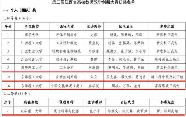 近日,由江西省教育厅主办、江西省高等学校师资培训中心协办的第三届江西省高校教师教学创新大赛现场决赛落下帷幕,我校刘淑娟老师获得“新工科正高组”特等奖,朱立老师获得“新工科中级及以下组”特等奖,廖华英老师获得“课程思政正高组”特等奖,张小平老师获得“新工科副高组”二等奖;三位老师晋级全国高校教师教学创新大赛;学校获“优秀组织奖”,是全省高校连续三年获得优秀组织奖的三所学校之一。