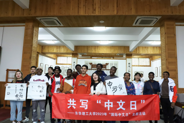 4月18日,学校国际学生赴“中国毛笔之乡”江西进贤县文港镇开展“雨生百谷正逢时,挥墨共写中文日”的线下主题活动。在文港镇中国毛笔文化博物馆,国际学生兴致勃勃地参观了毛笔文化、毛笔实物、书画艺术等展区。在毛笔工艺制作坊,国际学生观摩了手工艺人现场制作毛笔工艺全过程。在南昌市非物质文化遗产传承人徐华荣老师的带领下,国际学生亲自上手体验了毛笔制作工序中的“刷毛”步骤。在书法体验环节,国际学生经专业教师指导后,很快掌握了执笔方法和书写姿势,写下了“中文日”三个字。