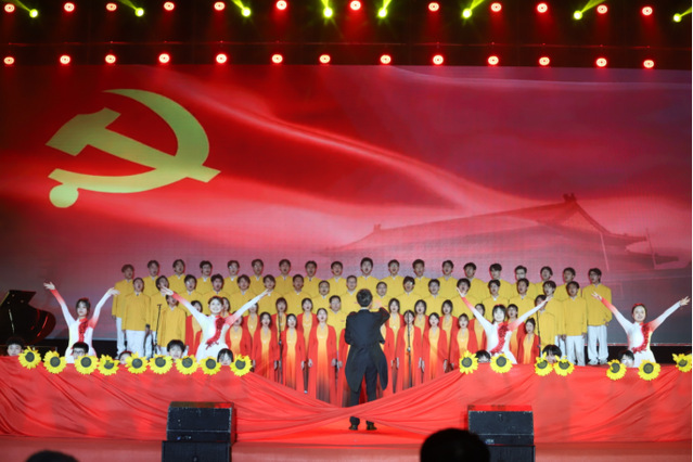 音乐思政课以中国共产党的发展史和广大青年的奋斗目标为主轴,通过融入情景朗诵、舞蹈等艺术化元素的大合唱形式,串联起“忆峥嵘岁月,燃信念之火”“续红色血脉,筑家国情怀”“踏追梦征程,扬青春力量”三大篇章。活动在千人合唱校歌和18位青年大学生挥舞的校旗院旗中拉开序幕,进入决赛的8个学院各展风采,打造了一场青春洋溢的视听盛宴,演绎了一堂别开生面的思政好课。