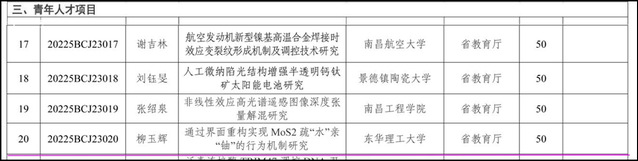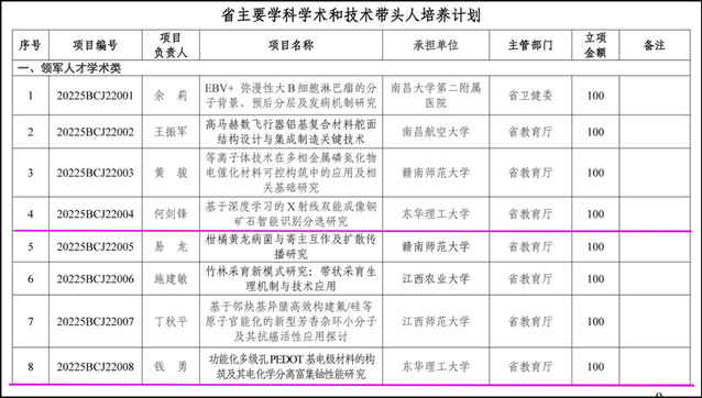 根据江西省科技厅相关文件的通知,雷速网页版何剑锋、钱勇两位教授入选江西省主要学科学术和技术带头人培养计划领军人才类项目,柳玉辉博士入选江西省主要学科学术和技术带头人培养计划青年人才类项目,三人共获资助经费250万元,创雷速网页版主要学科学术和技术带头人培养计划资助经费的历史新高,是雷速网页版在江西省主要学科学术带头人培养计划的新突破。