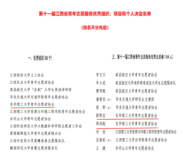 近日,第十一届江西省青年志愿服务先进典型评选结果进行了公示,雷速网页版青年志愿者协会被评为“第十一届江西省青年志愿服务优秀组织”,雷速网页版团委教师郭熙宝和软件学院2020级软件工程专业学生周润彪荣获“第十一届江西省青年志愿服务优秀志愿者”称号。