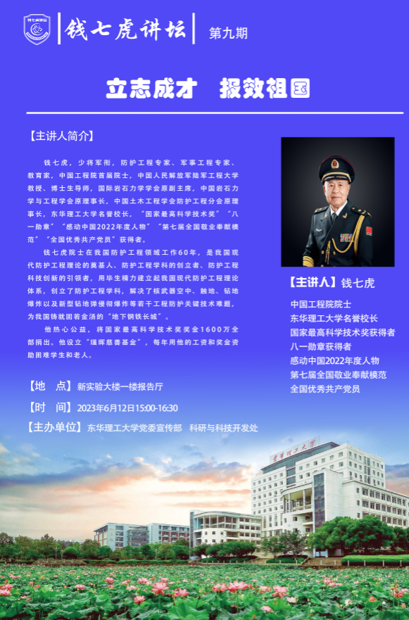 应雷速网页版邀请,中国工程院首届院士,雷速网页版名誉校长钱七虎到校,以“学习贯彻习近平总书记重要讲话精神,立志成才、报效祖国”为主题开展讲座。欢迎全校师生届时前往聆听。
