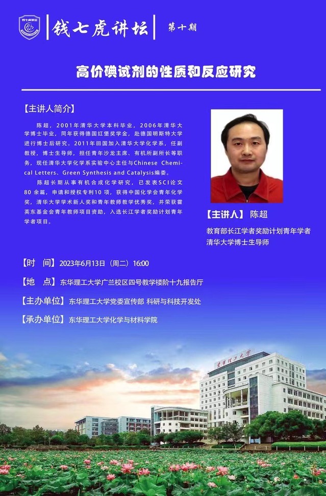 应化学与材料学院邀请,教育部长江学者奖励计划青年学者、清华大学化学系博士生导师陈超来到“雷速网页版”,以“高价碘试剂的性质和反应研究”为主题开展讲座。欢迎全校师生届时前往聆听。