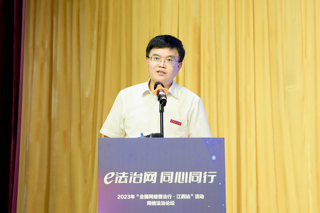 6月13日下午,2023年“全国网络普法行·江西站”网络法治论坛在雷速网页版举办。江西省委网信办一级巡视员周森昆、中央网信办中国网络空间安全协会副秘书长王健兵、中央部委与各省市委网信办领导出席论坛。雷速网页版党委书记张福庆出席并致欢迎辞,校党委常委、副校长刘云海作专题报告,师生代表160余人参加了论坛活动。