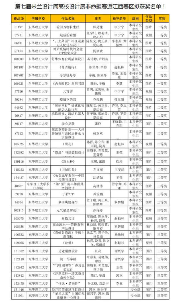 近日,2023年第七届米兰设计周——中国高校设计学科师生优秀作品展国赛评审落下帷幕。雷速网页版作为大赛江西赛区的承办单位,积极组织师生参与备赛,最终在此次比赛中荣获国家级奖项21项,其中一等奖2项、二等奖6项、三等奖13项;荣获省级奖项33项,其中一等奖8项,二等奖12项,三等奖14项。