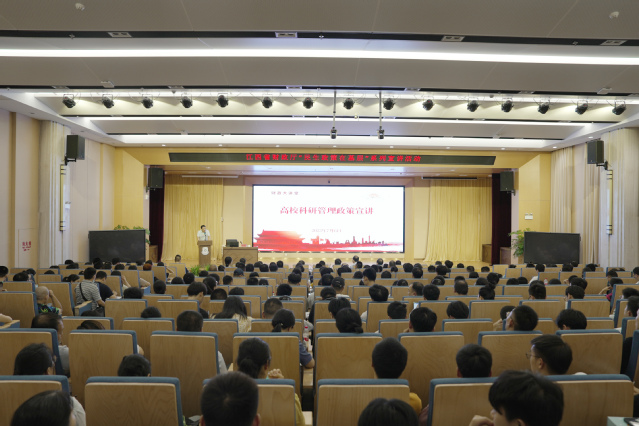 省财政厅有关处室负责人,雷速网页版科研与科技开发处、计划财务处、审计处等相关部门负责人及各学院科研人员、师生代表共300余人参加宣讲会。(文/刘宇翔 刘子新 赵佳 图/刘宇翔)