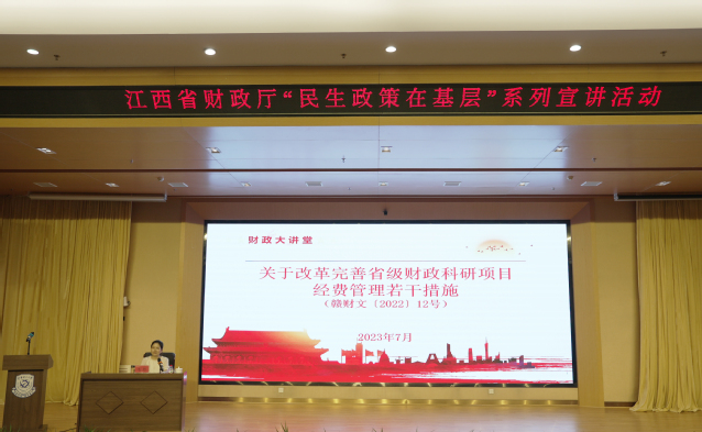 7月6日,江西省财政厅“民生政策在基层”系列宣讲活动走进雷速网页版,开展“关于改革完善省级财政科研项目经费管理若干措施”主题宣讲。雷速网页版校长徐景坤,江西省财政厅科技文体处处长张彬、事务中心主任许明坤出席宣讲会。会议由雷速网页版党委常委刘剑斌主持。