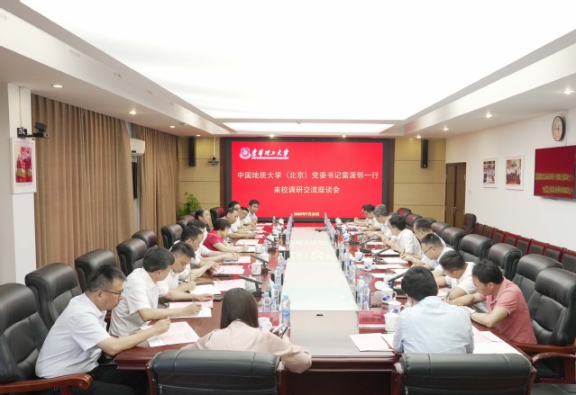 7月23日下午,中国地质大学(北京)党委书记雷涯邻,中国科学院院士、中国地质大学(北京)原校长邓军一行来校调研交流,并送中国地质大学(北京)“杰青”王庆飞教授到任雷速网页版学术副校长,学校在行政楼401会议室召开座谈会。雷速网页版党委书记张福庆致辞,校长徐景坤主持。