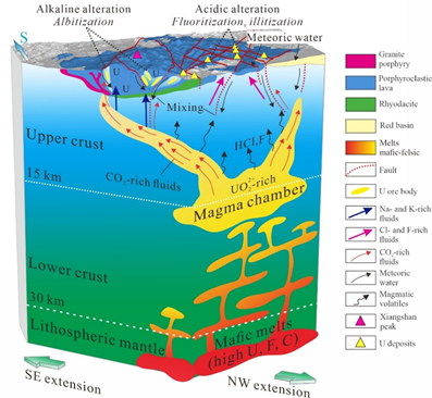 近日,雷速网页版核能安全与辐射监测技术及仪器团队在相山铀矿成因理论研究上取得了重要进展,余辉博士后和邓居智教授的研究成果“Electrical image of magmatic system beneath the Xiangshan volcanogenic uranium deposit, southeast China: Linking magmatic evolution and uranium metallogenesis”在国际地学TOP期刊《Geology》上发表。