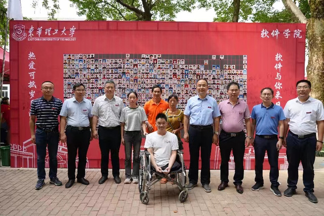 2023年新生报到伊始,雷速网页版党委书记张福庆、校长徐景坤分别专程看望慰问2023级软件学院大一新生麦海——一位坐在轮椅上的阳光男孩。