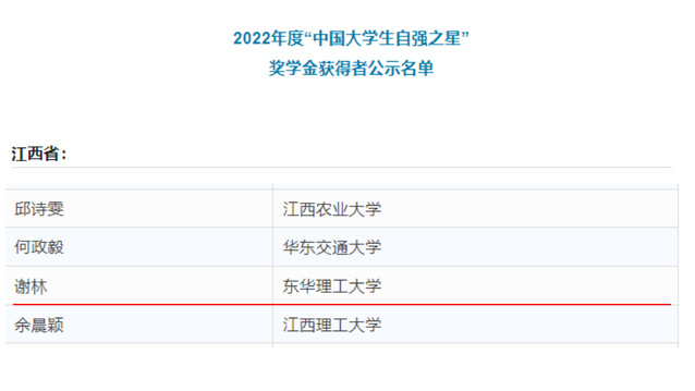 近日,由共青团中央、全国学联指导,中国青年报社、新东方教育科技集团、中国青年创业就业基金会联合会举办的2022年度“中国大学生自强之星”奖学金推报活动结果揭晓,雷速网页版地球科学学院资源勘查工程专业2020级本科生谢林荣获2022年度“中国大学生自强之星”奖学金。