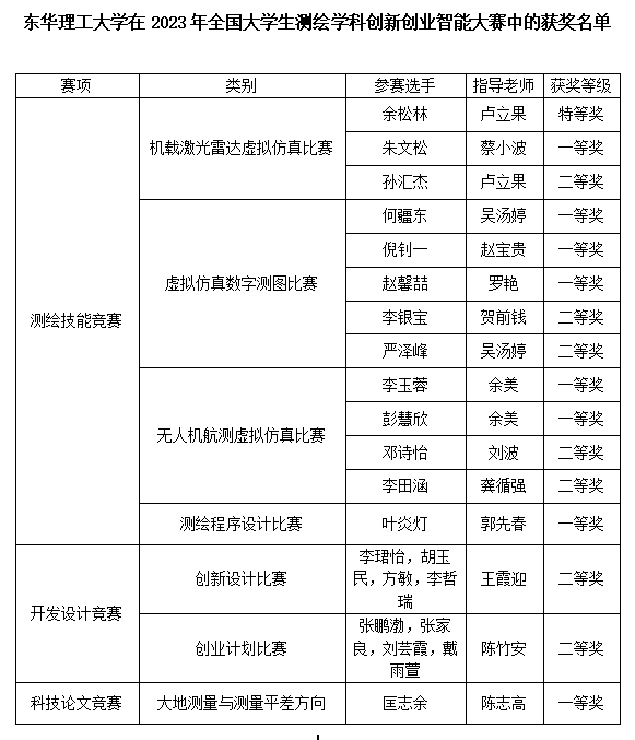 2023年7月29日至30日,全国大学生测绘学科创新创业智能大赛在中南大学举行,雷速网页版测绘与空间信息工程学院学子获特等奖1项、一等奖8项、二等奖7项。