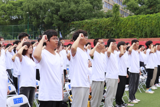 典礼尾声,全体新生起立向主席台师长们鞠躬行拜师礼,并举起右拳,面向校旗进行了入学宣誓。(文/陈婷 图/徐富林 刘梦林 尚珂)
