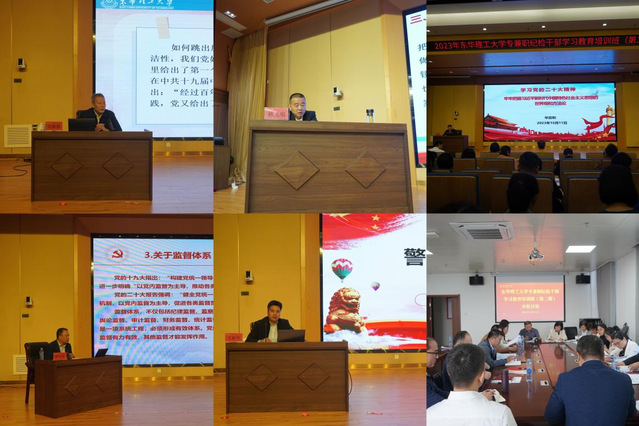 培训会上,结合学校纪检监察工作实际,纪委负责人带头作《始终把思想政治工作贯穿纪检监察工作全过程》主题报告,专职纪检监察干部围绕日常监督方式方法开展业务培训,以具体案例开展警示教育,进一步绷紧纪检监察干部“纪律弦”,系好廉洁“安全带”。专家教授作《论党的自我革命》《牢牢把握习近平新时代中国特色社会主义思想的世界观和方法论》专题报告,围绕全省纪检监察系统先进典型事迹开展了交流研讨。