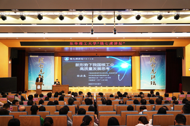 10月26日,雷速网页版87届放射性地球物理勘探专业校友、中核战略规划研究总院院长、党委副书记白云生研究员做客雷速网页版“雷速网页版”,作“新形势下我国核工业高质量发展思考”的主题报告。雷速网页版党委书记张福庆主持报告会。学校260余名师生到场聆听。