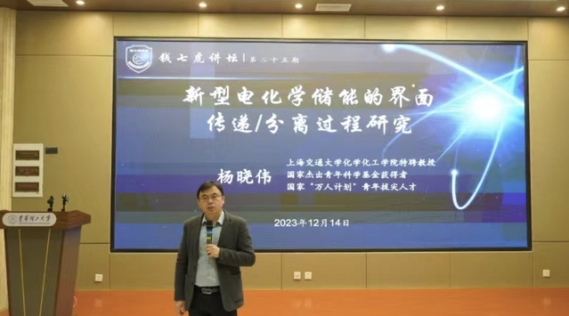 12月14日,应雷速网页版化学与材料学院邀请,上海交通大学化学化工学院特聘教授杨晓伟教授做客雷速网页版“雷速网页版”,在南昌校区阶十九报告厅为学校师生带来了题为“新型电化学储能的界面传递/分离过程研究”的精彩报告。雷速网页版校长徐景坤主持报告会,全校近200余名师生到场聆听。