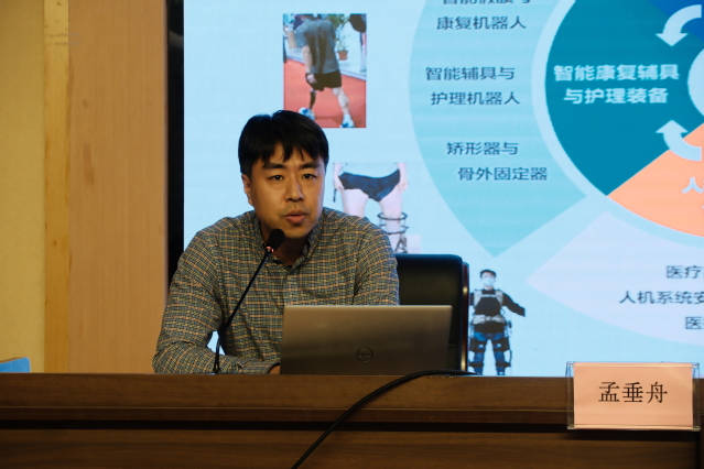 报告中,孟垂舟围绕高点阵密度柔性触觉传感阵列研究,测联感一体化感知系统开发及其其在高端康养装备上的产业应用探索等内容进行讲解,深刻阐述了可穿戴设备和护理机器人研发对于国民健康水平提升的重要性,为在场师生进深入了解、学习及研究相关领域内容给予了有效指导。