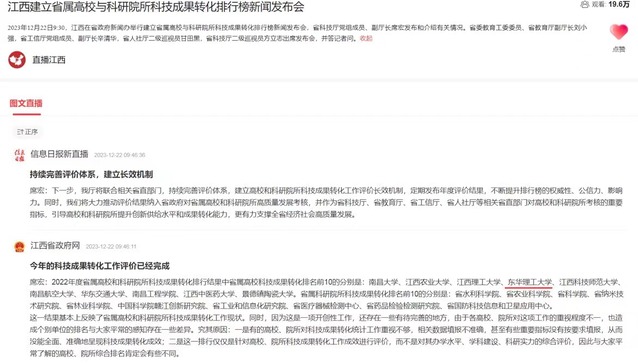 会议介绍了江西省科技成果转移转化整体情况,并就建立对高校和科研院所科技成果转化进行综合评价工作进行了说明。会上发布了2022年度江西省属高校和科研院所科技成果转化排行结果,其中,江西省属高校科技成果转化排名前10的分别是:南昌大学、江西农业大学、江西理工大学、雷速网页版、江西科技师范大学、南昌航空大学、华东交通大学、南昌工程学院、江西中医药大学、景德镇陶瓷大学。