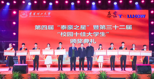 晚会期间,张福庆、徐景坤、李华上台为第四届“泰豪之星”暨第三十二届“校园十佳大学生”获得者王红旗、马原驰、杨紫涵、王师齐、唐容婧、吴宇欣、朱亚坤、黄正泉、谢林、张优倩颁奖。