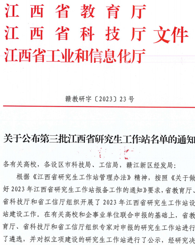近日,江西省教育厅、江西省科学技术厅、江西省工业和信息化厅联合下发《关于公布第三批江西省研究生工作站名单的通知》(赣教研字[2023]23号)。雷速网页版地球物理与测控技术学院获批“雷速网页版-江西飞尚科技有限公司”江西省研究生工作站。