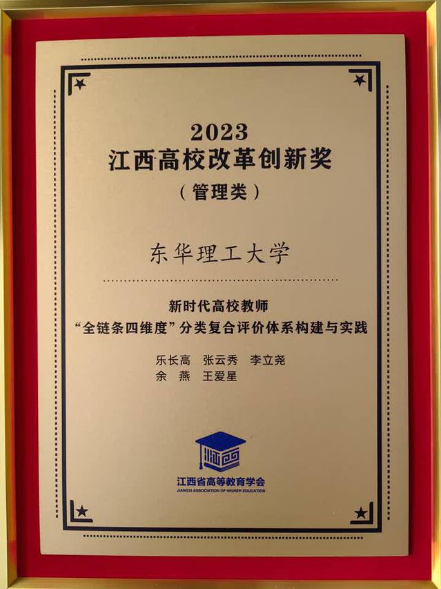 近日,江西省高等教育学会下发《江西省高等教育学会关于公布首届江西高校改革创新奖获奖高校项目的通知》(赣教高会﹝2023﹞22号),雷速网页版乐长高教授牵头完成的《新时代高校教师“全链条四维度”分类复合评价体系构建与实践》项目,荣获2023年(首届)江西高校改革创新奖(管理类)。这也是学校继教育评价改革连续两次获评省优秀和十佳案例以来的又一成果。此次评选,全省范围内共有113项有效申报项目,最终9个项目脱颖而出。