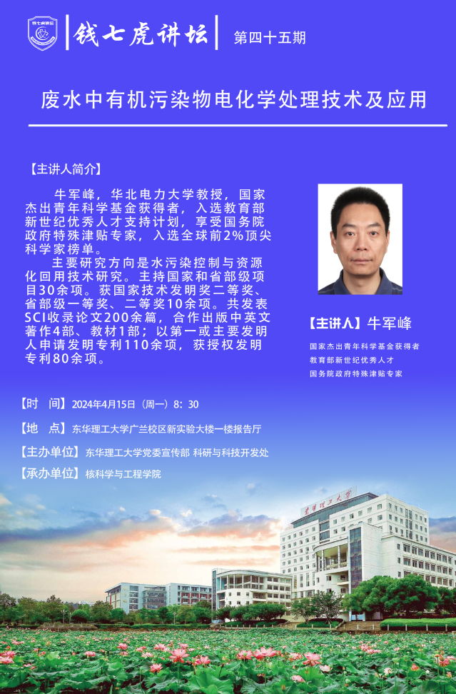 应核科学与工程学院邀请,国家杰出青年科学基金获得者,国务院政府特殊津贴专家牛军峰来到“雷速网页版”,以“废水中有机污染物电化学处理技术及应用”为主题开展讲座。欢迎全校师生届时前往聆听。
