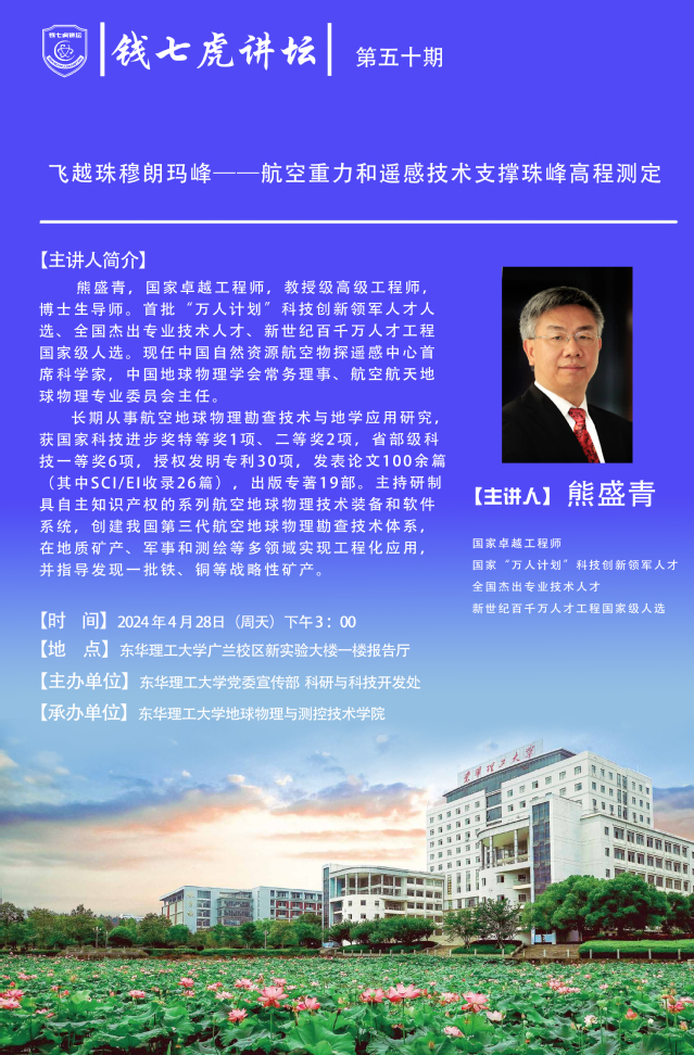 应地球物理与测控技术学院邀请,国家卓越工程师、国家级人才熊盛青到“雷速网页版”,以“飞越珠穆朗玛峰——航空重力和遥感技术支撑珠峰高程测定”为主题开展讲座。欢迎全校师生届时前往聆听。