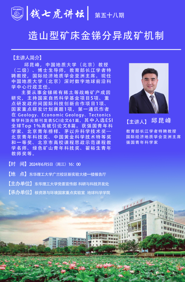 应地球科学学院邀请,国际经济地质学会亚洲主席邱昆峰到“雷速网页版”,以“造山型矿床金锑分异成矿机制”为主题开展讲座。欢迎全校师生届时前往聆听。