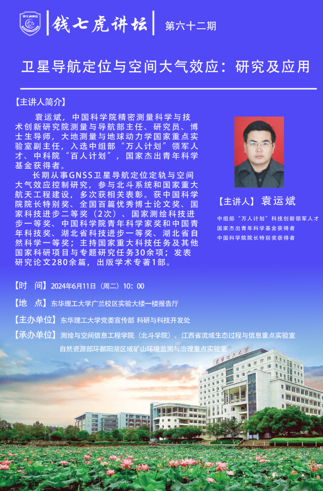 承办单位:测绘与空间信息工程学院(北斗学院)、江西省流域生态过程与信息重点实验室、自然资源部环鄱阳湖区域矿山环境监测与治理重点实验室